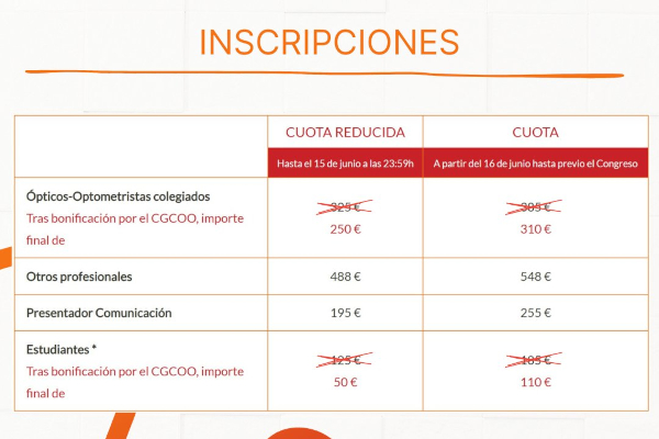 Bonificaciones para colegiados y estudiantes